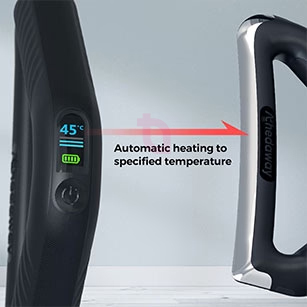 Nó có thể đạt đến 50 độ C (122 độ F) trong vài giây và có ba mức nhiệt độ điều chỉnh. Nhiệt và trải mạc giúp tăng lưu lượng máu, thúc đẩy quá trình lành vết thương. |